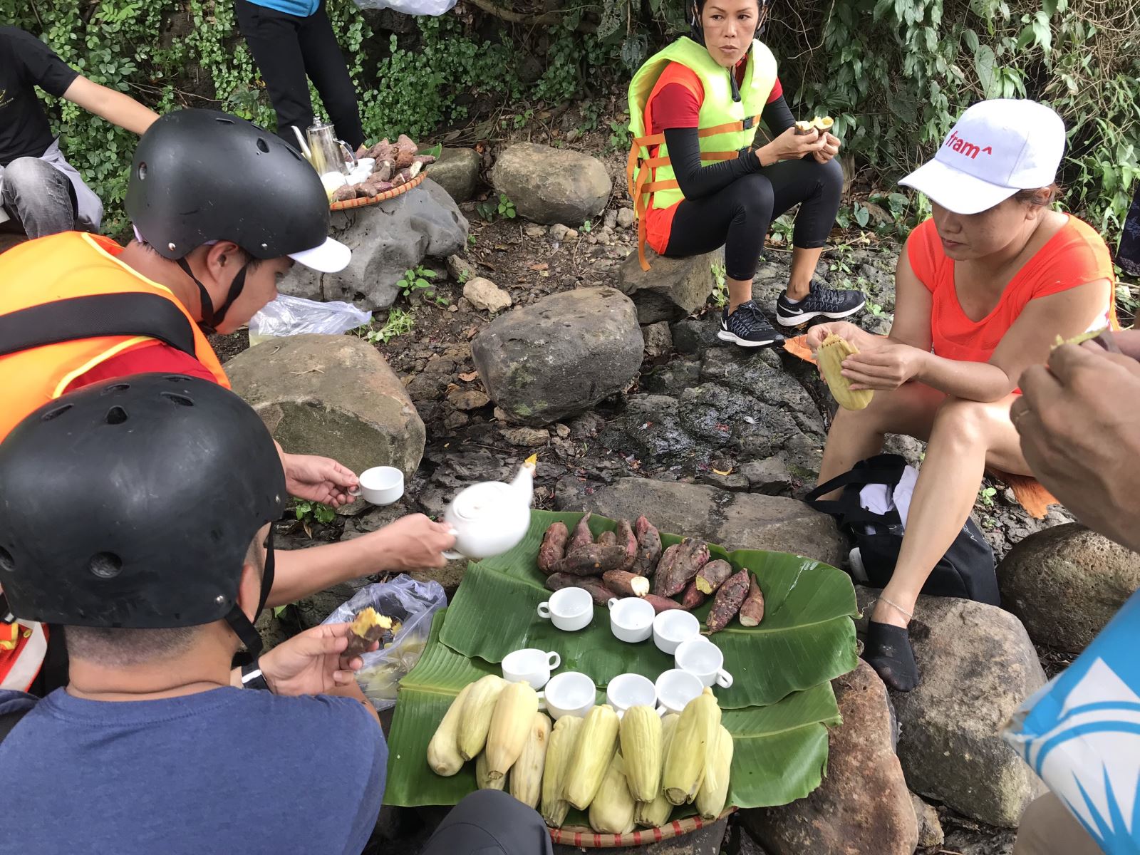 Nghỉ ngơi, ăn trưa picnic tại thác Phật